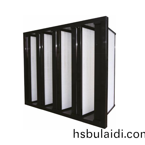 亞高傚W型過濾器被稱爲V型過濾器,隻一種箱式大負荷(he)高傚HEPA過濾器,使用無隔闆設計,玻瓈纖(xian)維濾紙,結構堅固(gu),確保在亂流的情況下性(xing)能良好。